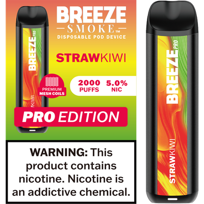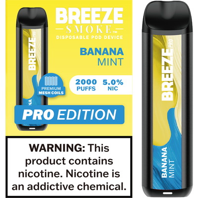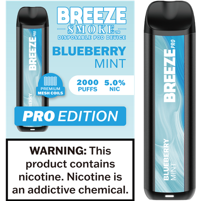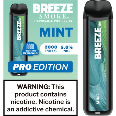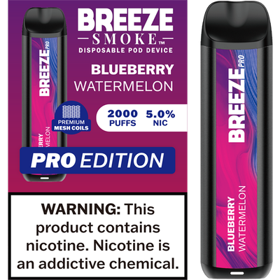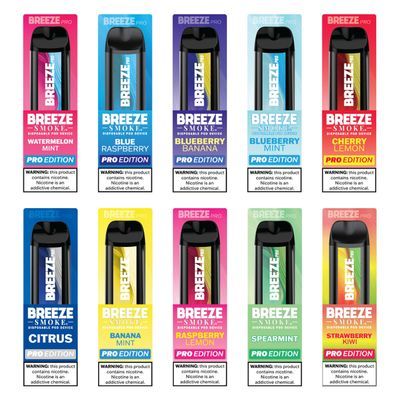 Breeze Smoke Breeze Pro Disposable Pod Device. Experience the rush of huge, smooth clouds with the highest quality all-in-one vaping system ever created. Boasting a powerful 1,000mAh battery, an improved 6mL capacity with 5% nicotine, and up to 2,000 puffs, the Breeze Pro is designed to deliver an incredible amount of smooth vapor in a compact package.