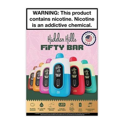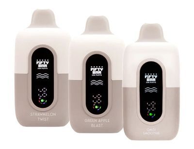 Fifty Bar 20K is the only USA-made model with flavors developed by American master formulators. Made in Thousand Oaks, CA, and powered by Beard Vape Co., this device features Always Active Boost Mode to maintain optimal performance. With an 18ml capacity, it delivers up to 20,000 puffs. It includes a Grade-A rechargeable battery with Type-C USB charging and a dual parallel mesh coil for enhanced flavor through the last drop of e-liquid.